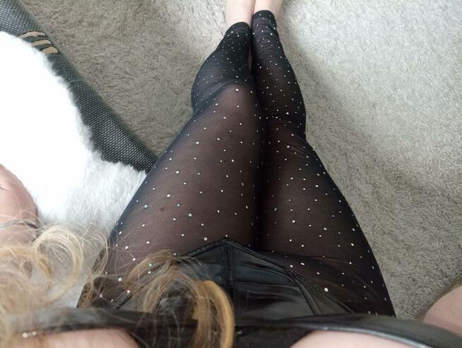 s...owne, przezroczyste na całej długości tiulowe legginsy zdobione kolorowymi, błyszczącymi diamencikami. Nowe. Rozmiar ...